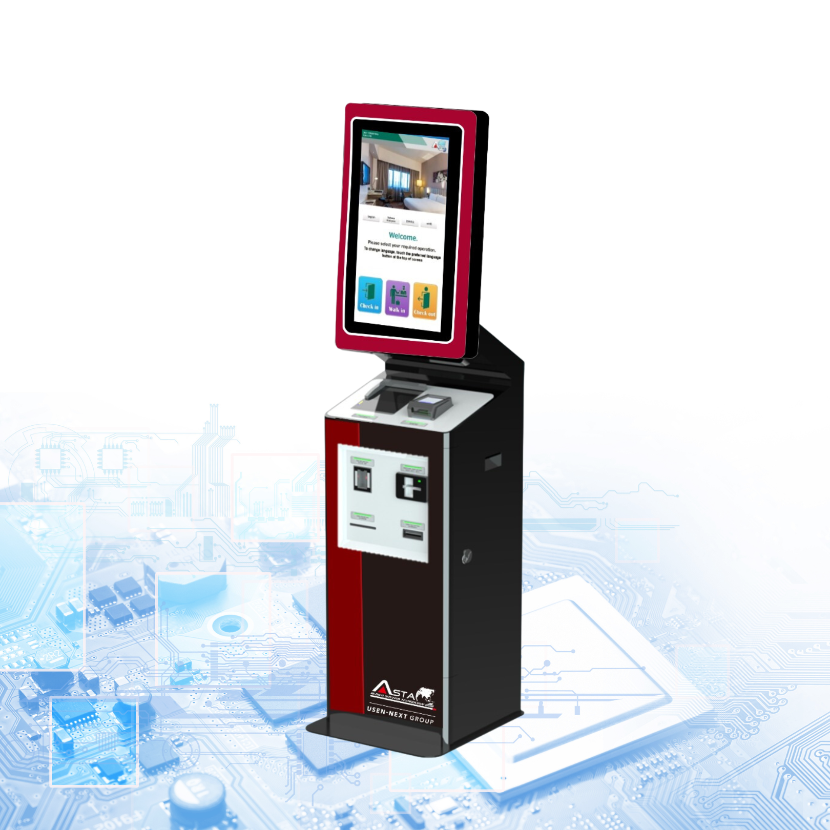 さまざまなシーンに対応したセルフチェックイン/アウト機で 非対面/非接触を実現するニューノーマルレセプションを実現し、業務生産向上のお手伝いをいたします。